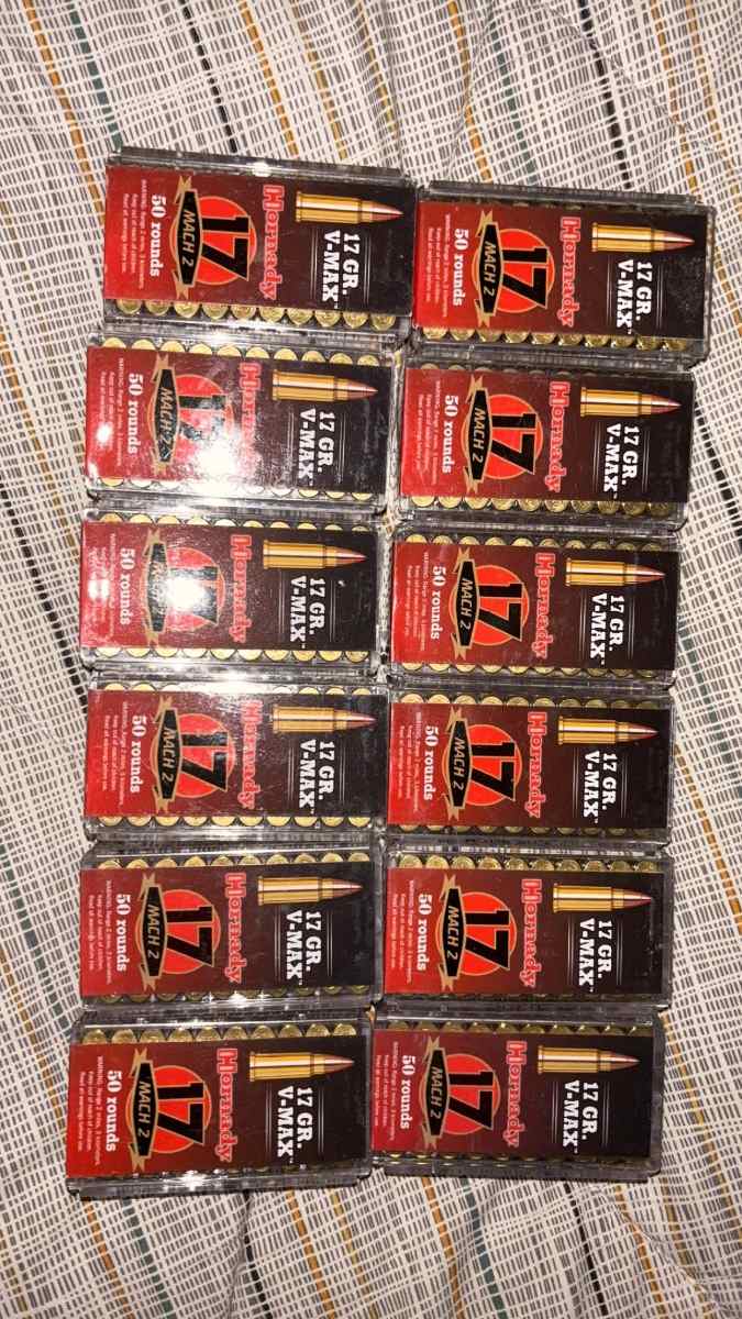 12 boxes of unopened 17 Hornady Mach 2 ammunition