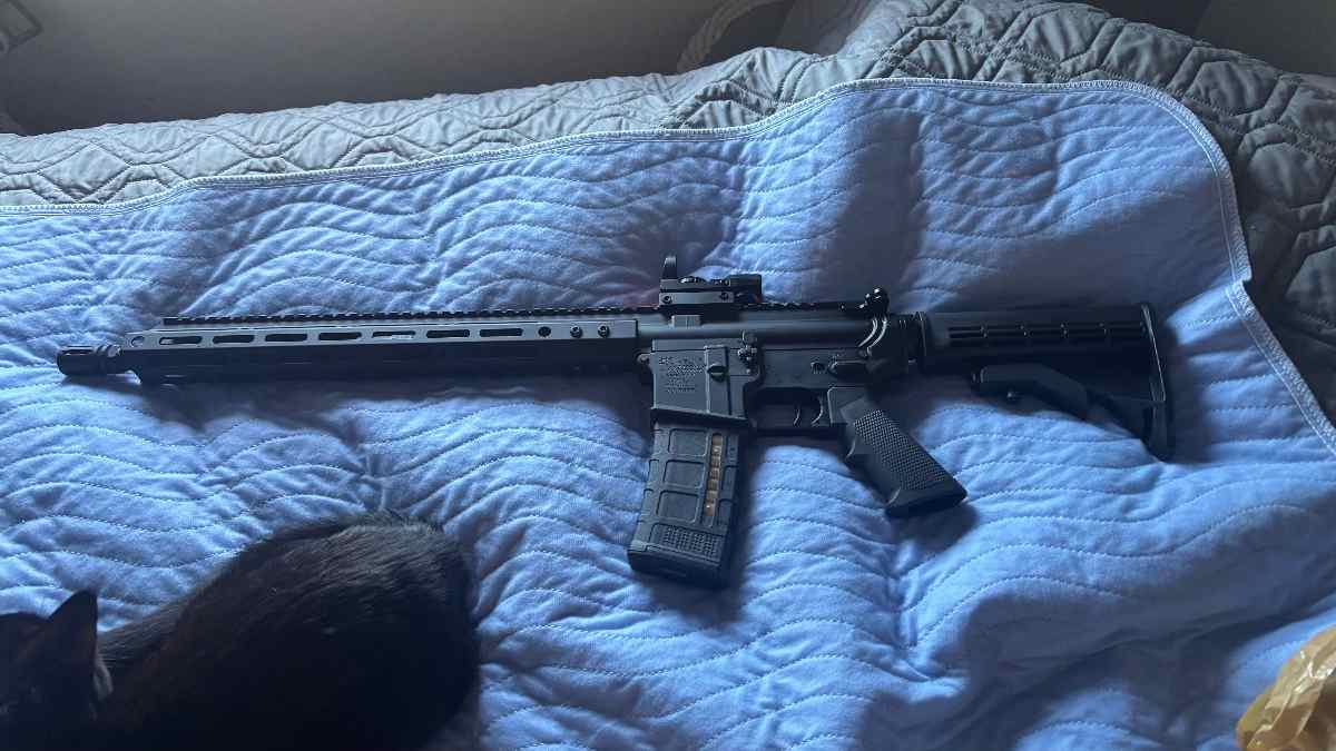 Perfectly functioning Anderson AM-15 got it in a trade, I’m pretty sure it has a aftermarket hand guard. Wanting to trade for an ar-pistol. Has a cheap sight on top but works as intended.